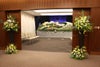 葬儀会場の入り口付近をお花で彩るスタンド花です。