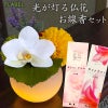 美しい胡蝶蘭に、心落ち着くお線香の香りと、ロウの花器から漏れる優しい光を添えて。