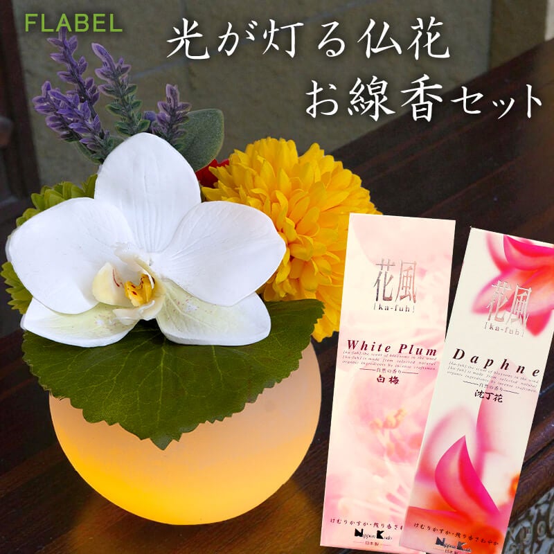 【ほんのり灯る】癒しのお供え仏花とお線香のセット アーティシャル仏花 花胡蝶とお線香セット