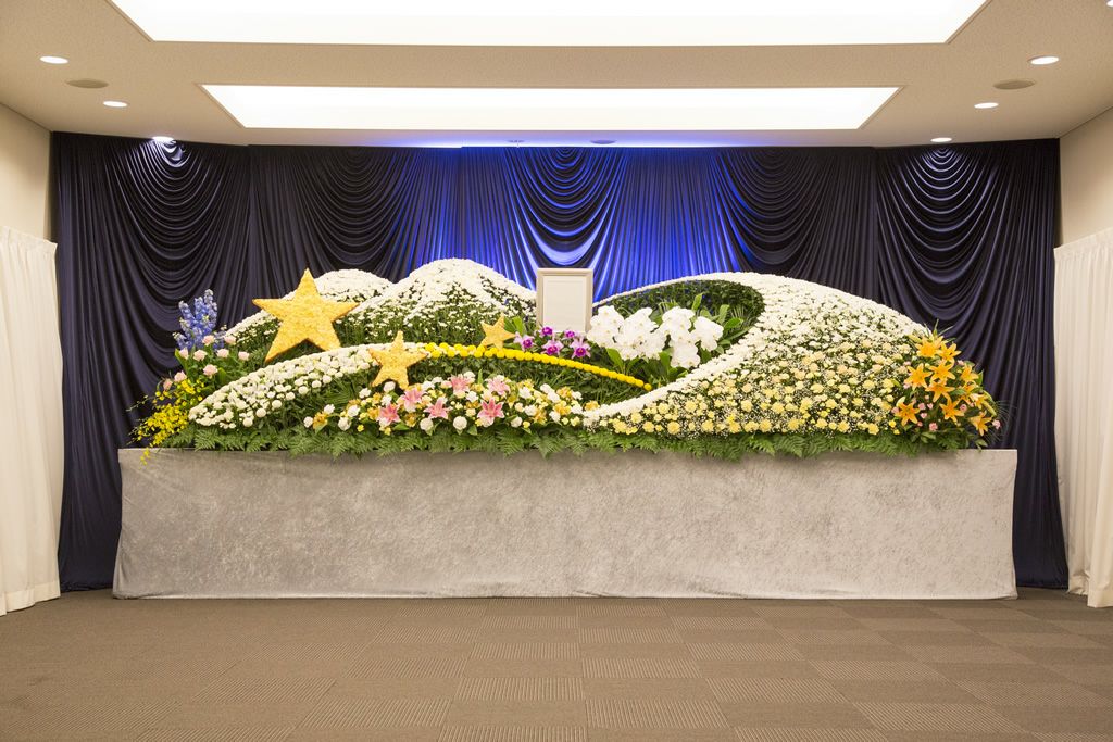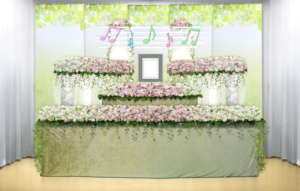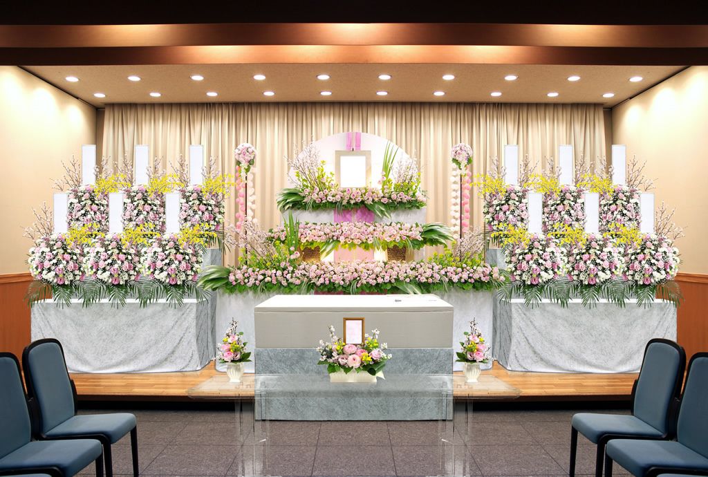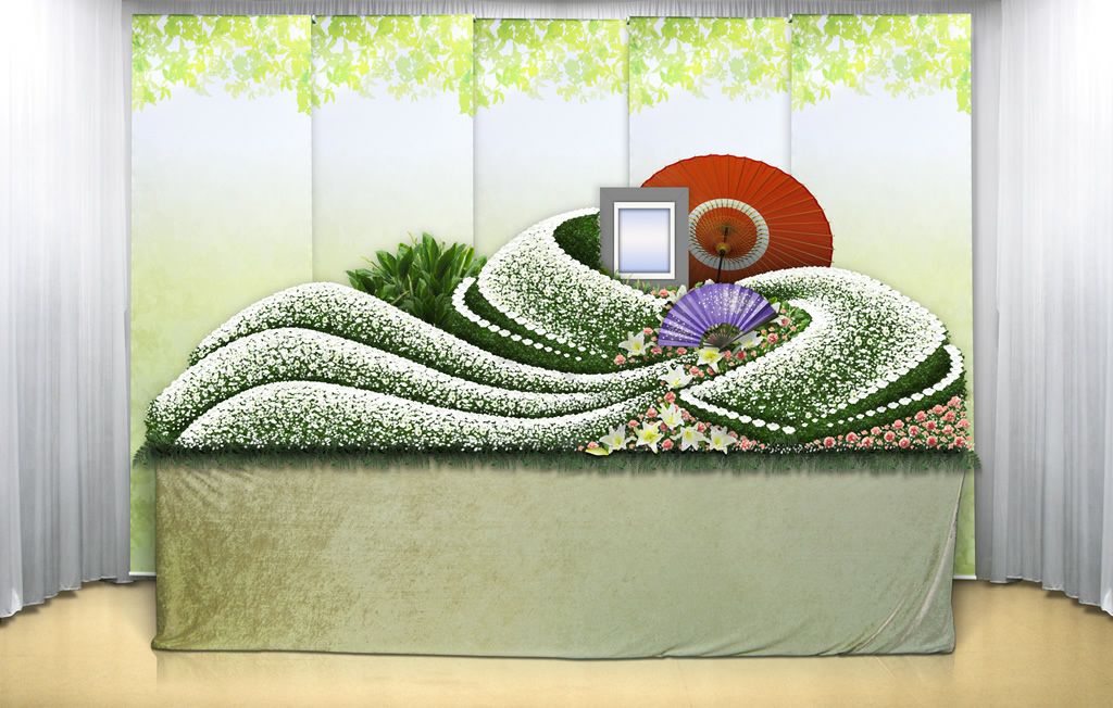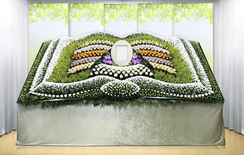 従来の白木祭壇ではなく、お花で飾られた祭壇のことをいいます。