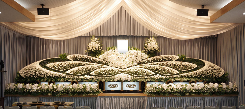 大企業による参列者1000人規模の大規模社葬はもちろん、中小企業による100名前後でのお別れの会の開催も近年では増加しております。FLABELでは大規模社葬から中小規模社葬まで、丁寧なヒアリングとご提案により、心に残る花祭壇を演出いたします。
